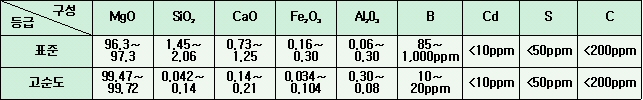 °í¼øµµ MgO °¡·ç·Î ´Ü´ÜÇÏ°Ô Á¶ÇյǾî ÁÖÀ§ ºÐÀ§±â·ÎºÎÅÍ ³ôÀº ºñÅë±â¼º ¹× ºÎ½Ä¿¡ °Çϰí 500Kg/§³ÀÇ ³ôÀº ¾Ð·Â¿¡µµ °ßµô ¼ö