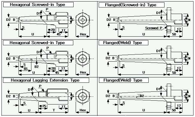 THERMOWELL ±¸¸Û ¹× ±íÀÌ(Bores & Depths)